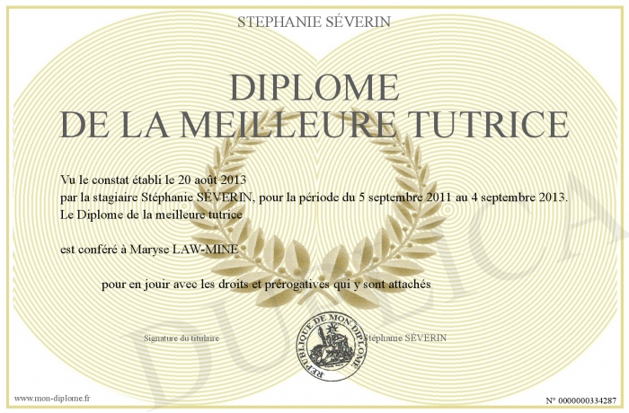 Envoyez par email votre Diplôme de la meilleure tutrice personalisé