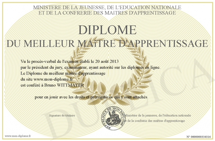 Envoyez par email votre Diplôme du meilleur maître d'apprentissage personalisé