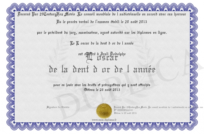 Envoyez par email votre L oscar de la dent d or de l année personalisé