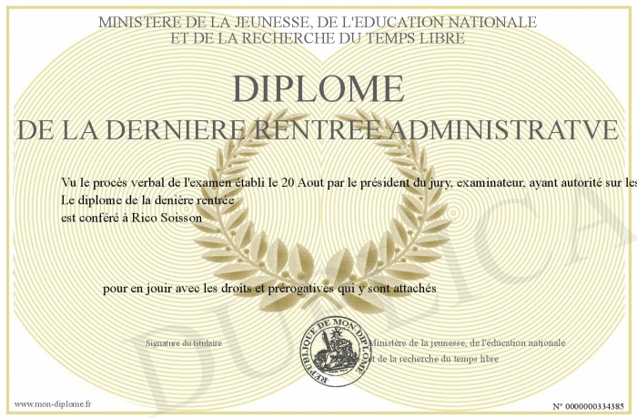 Envoyez par email votre Diplôme de la dernière rentrée administratve personalisé