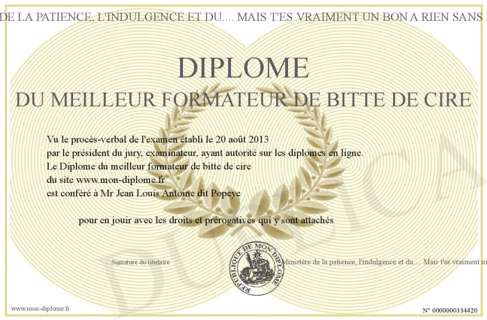Envoyez par email votre Diplôme du meilleur formateur de bitte de cire personalisé