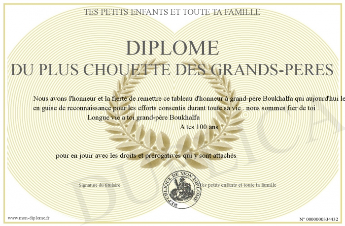 Envoyez par email votre Diplôme du plus chouette des grands-pères personalisé