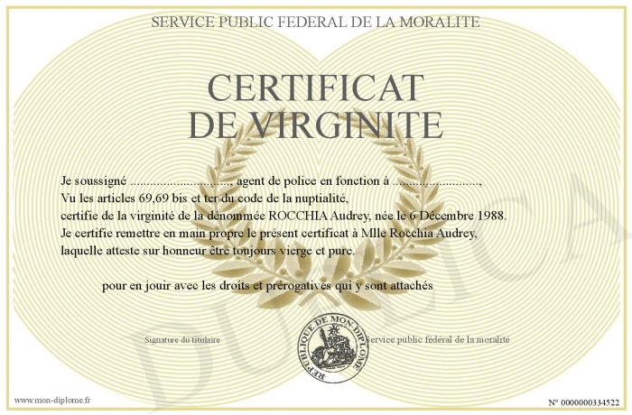 Envoyez par email votre Certificat de Virginité personalisé