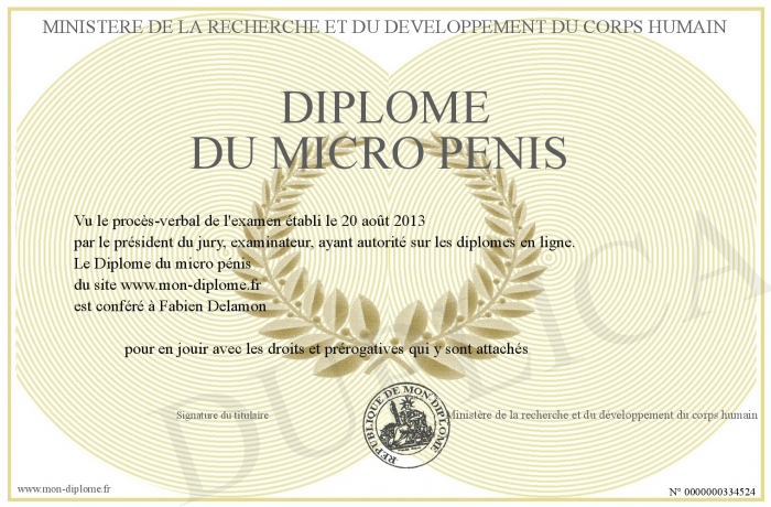 Envoyez par email votre Diplôme du micro pénis personalisé