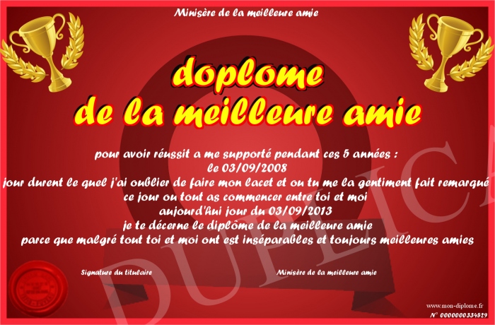 Envoyez par email votre doplome de la meilleure amie personalisé