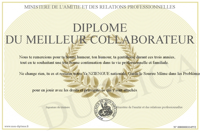 Envoyez par email votre Diplôme du meilleur collaborateur personalisé