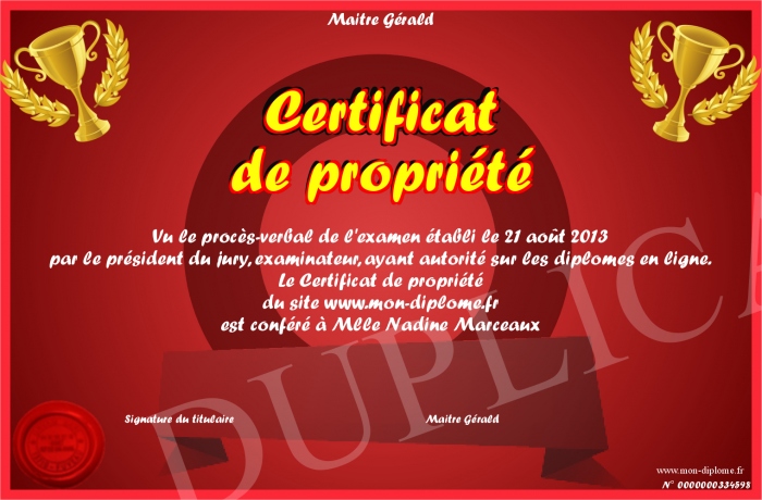 Envoyez par email votre Certificat de propriété personalisé