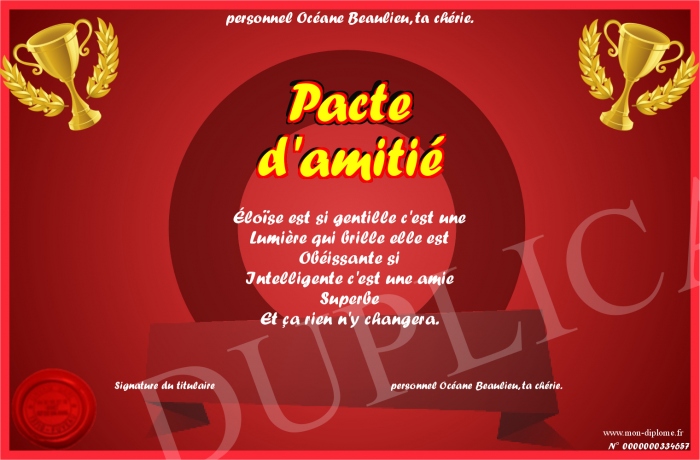 Envoyez par email votre Pacte d'amitié personalisé