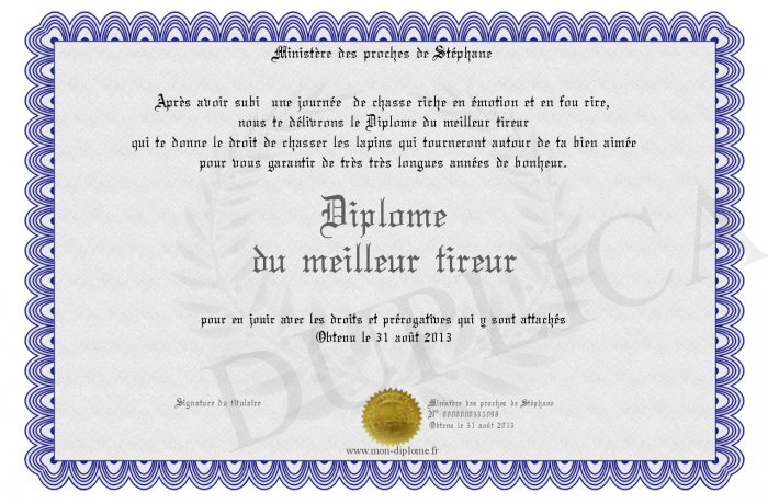 Envoyez par email votre Diplôme du meilleur tireur personalisé