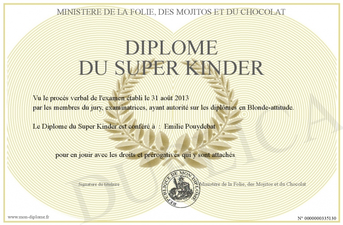 Envoyez par email votre Diplôme du Super Kinder personalisé