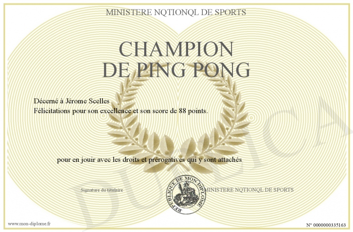 Envoyez par email votre CHAMPION DE PING PONG personalisé