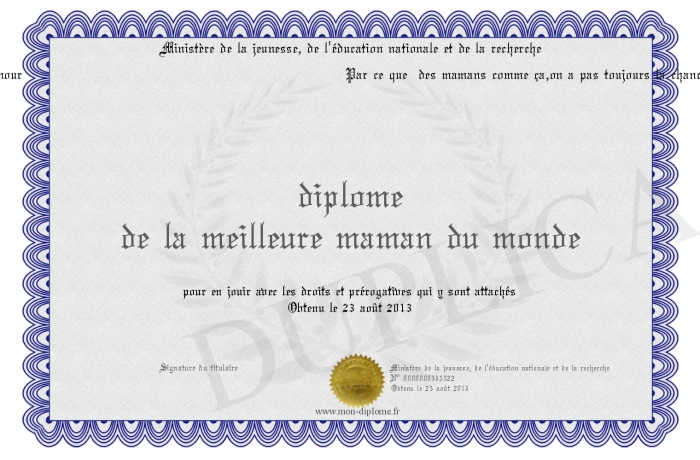 Envoyez par email votre diplome de la meilleure maman du monde personalisé