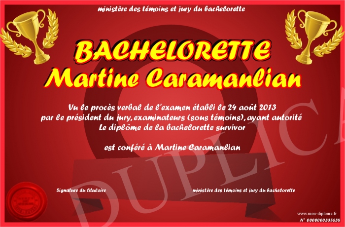 Envoyez par email votre BACHELORETTE Martine Caramanlian personalisé