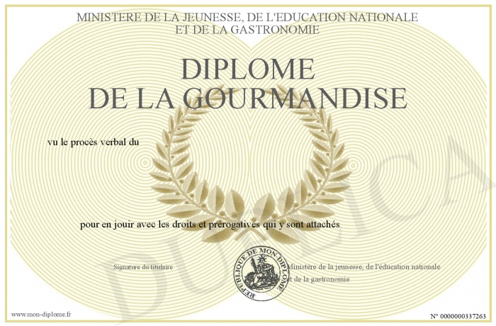 Envoyez par email votre Diplome de la gourmandise personalisé