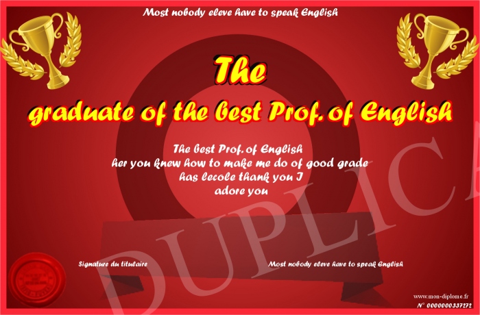 Envoyez par email votre The graduate of the best Prof. of English personalisé