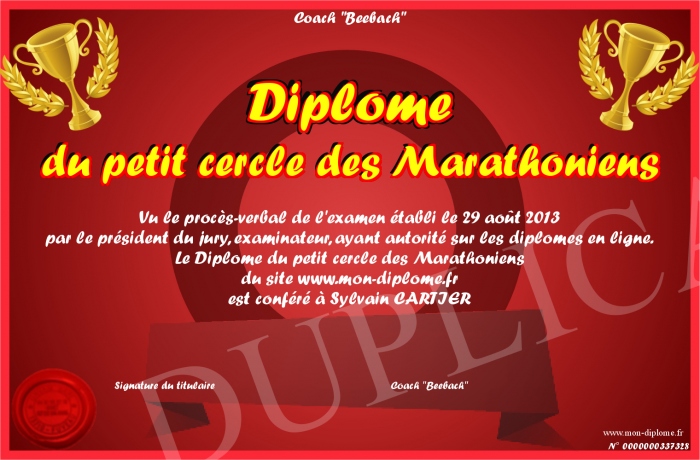 Envoyez par email votre Diplôme du petit cercle des Marathoniens personalisé