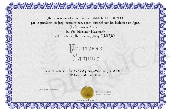 Envoyez par email votre Promesse d'amour personalisé