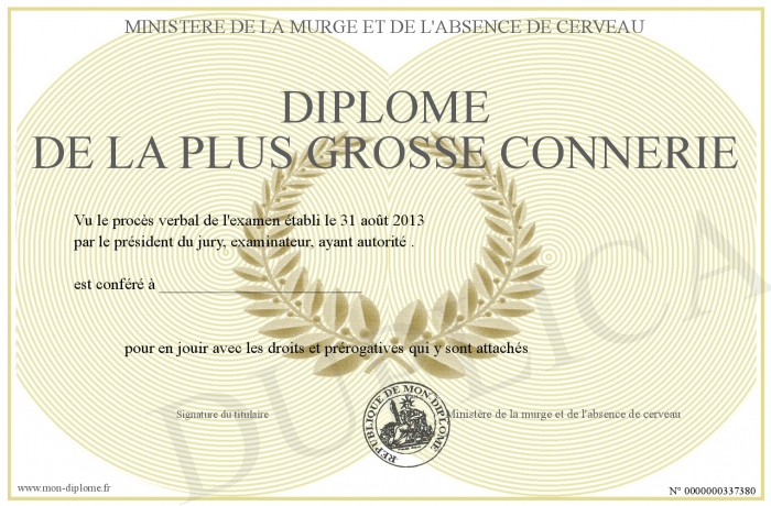 Envoyez par email votre Diplôme de la plus grosse connerie personalisé