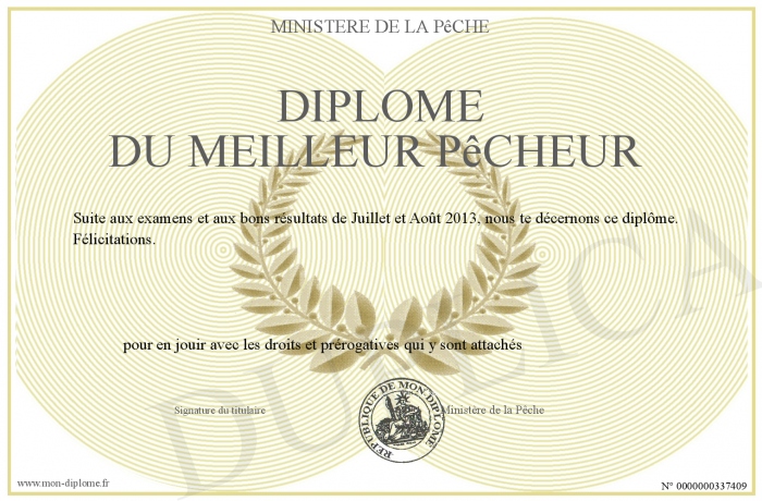 Envoyez par email votre Diplôme du Meilleur Pêcheur personalisé