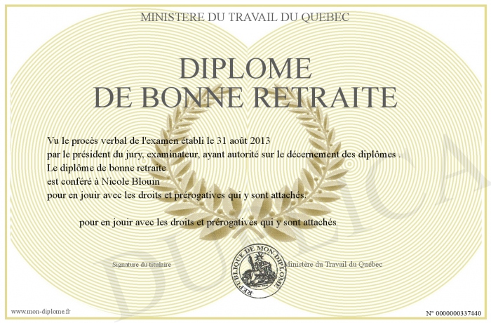 Envoyez par email votre Diplôme de Bonne Retraite personalisé