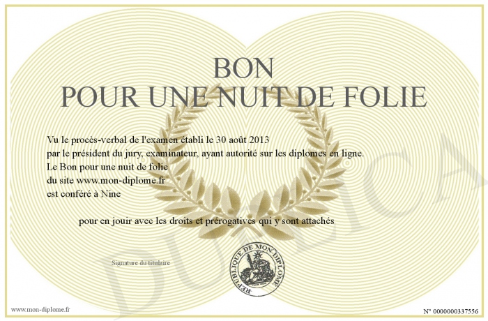 Envoyez par email votre Bon pour une nuit de folie personalisé