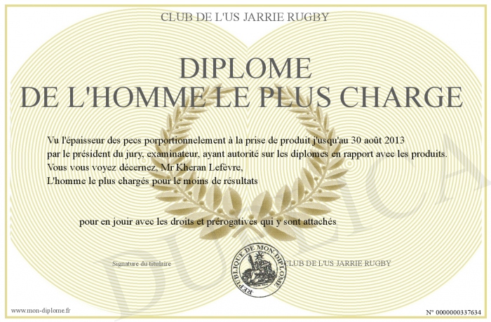 Envoyez par email votre DIPLOME DE L'HOMME LE PLUS CHARGE personalisé