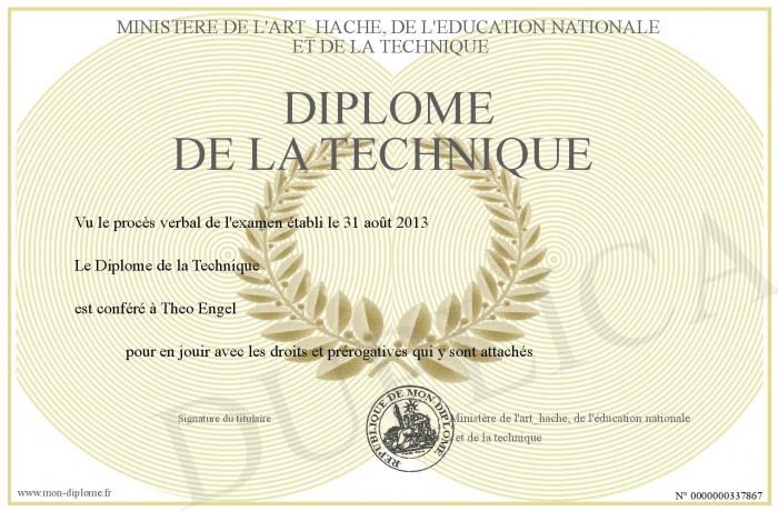 Envoyez par email votre Diplôme de la Technique personalisé