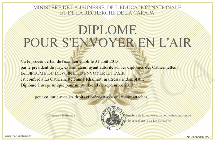 Envoyez par email votre Diplôme pour s'envoyer en l'air personalisé