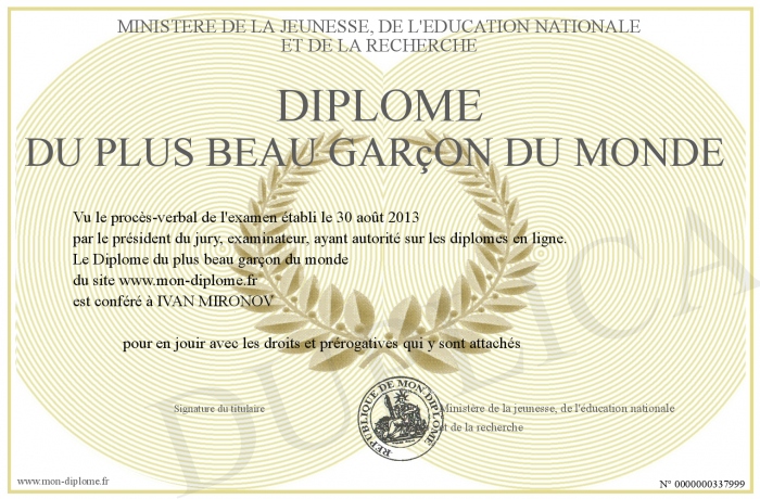 Envoyez par email votre Diplôme du plus beau garçon du monde personalisé