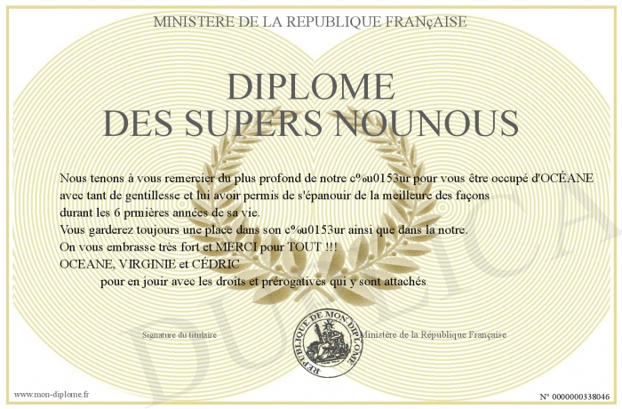Envoyez par email votre Diplôme des SUPERS NOUNOUS personalisé