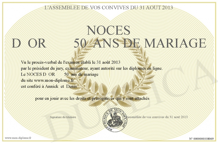 Envoyez par email votre NOCES D OR 50 ans de mariage personalisé