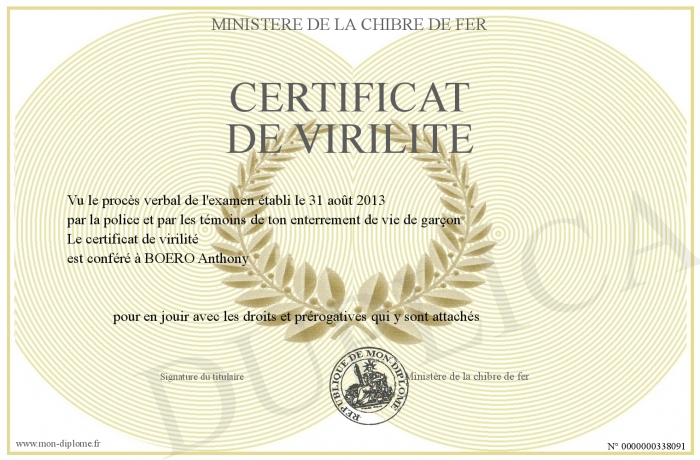 Envoyez par email votre certificat de virilité personalisé