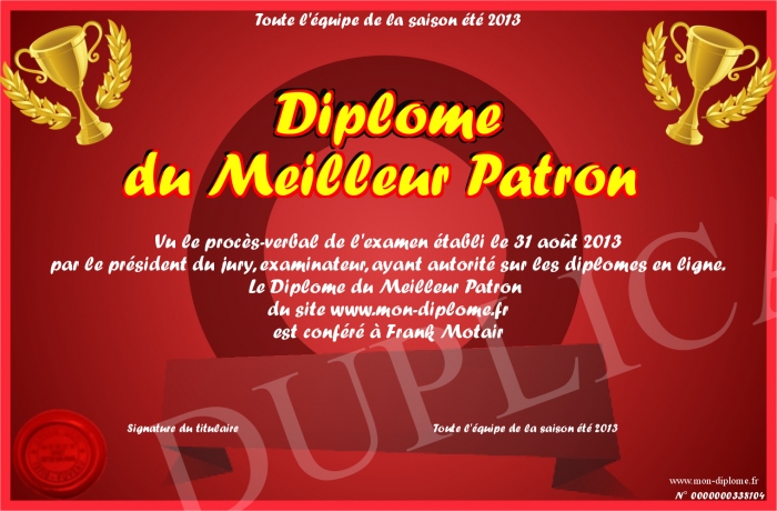 Envoyez par email votre Diplôme du Meilleur Patron personalisé