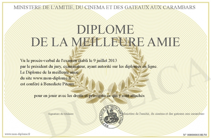 Envoyez par email votre Diplôme de la meilleure amie personalisé