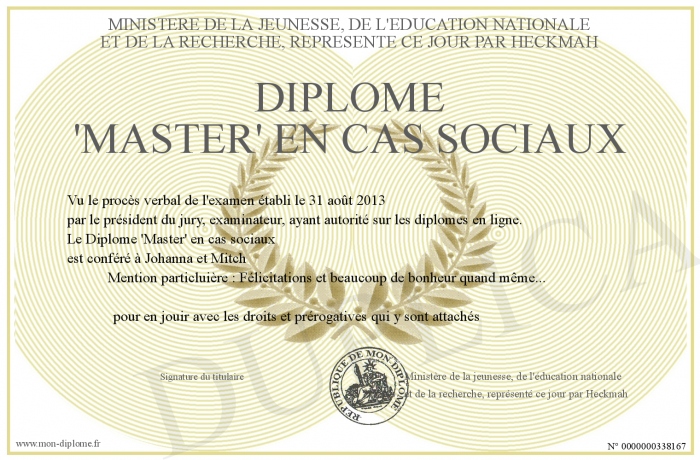 Envoyez par email votre Diplôme 'Master' en cas sociaux personalisé