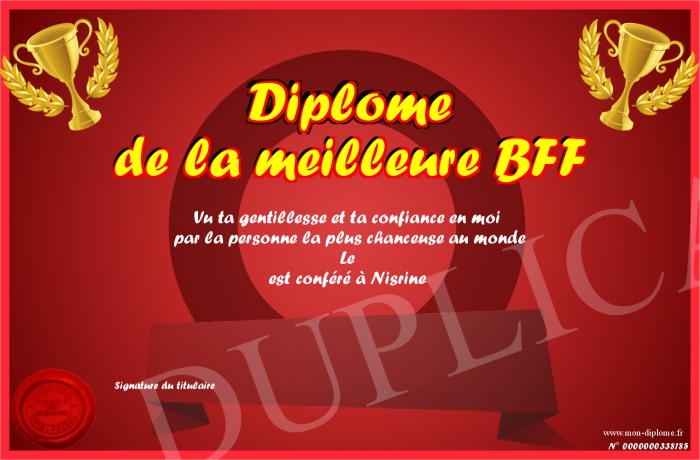 Envoyez par email votre Diplôme de la meilleure BFF personalisé