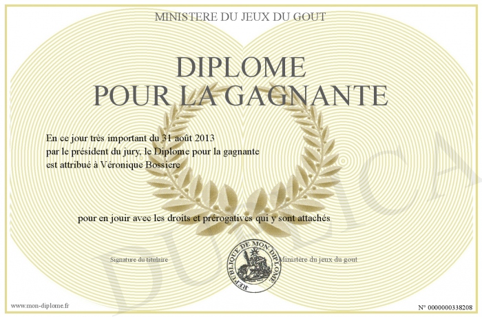 Envoyez par email votre Diplôme pour la gagnante personalisé
