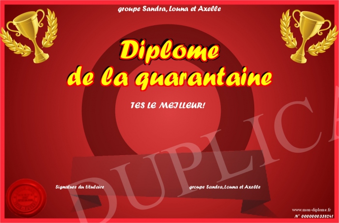 Envoyez par email votre Diplôme de la quarantaine personalisé
