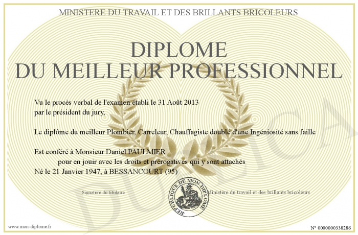 Envoyez par email votre Diplôme du Meilleur Professionnel personalisé