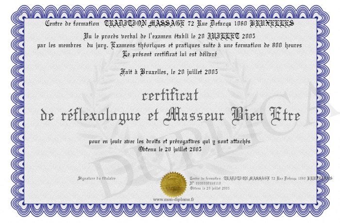 Envoyez par email votre certificat de réflexologue et Masseur Bien Etre personalisé