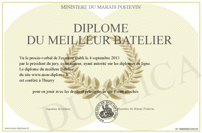 Envoyez par email votre diplome du meilleur Batelier personalisé