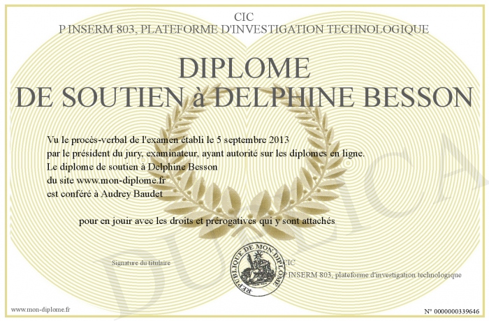 Envoyez par email votre diplôme de soutien à Delphine Besson personalisé