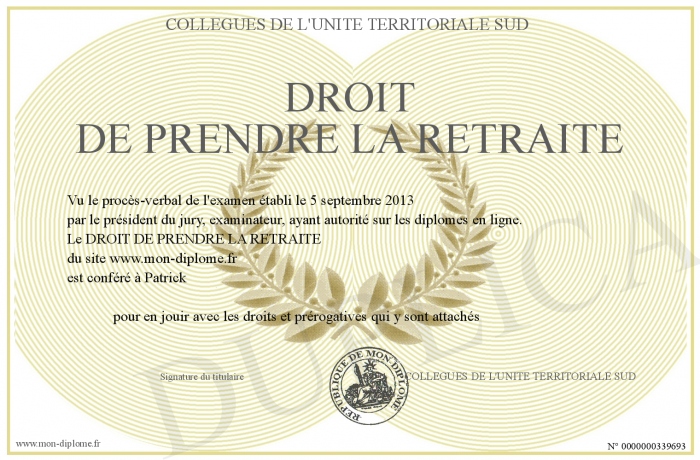 Envoyez par email votre DROIT DE PRENDRE LA RETRAITE personalisé