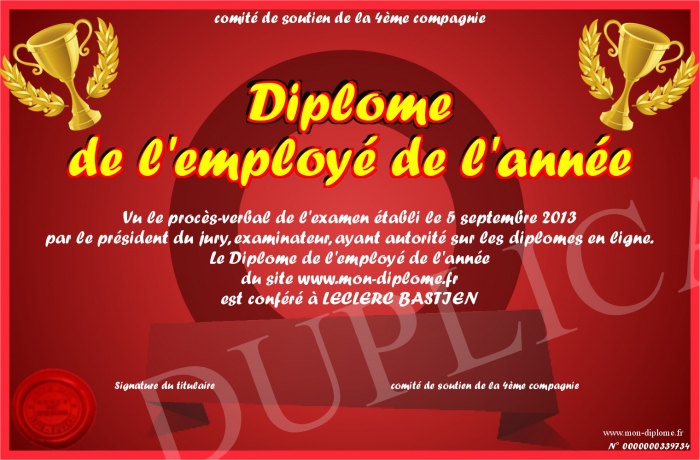 Envoyez par email votre Diplome de l'employé de l'année personalisé