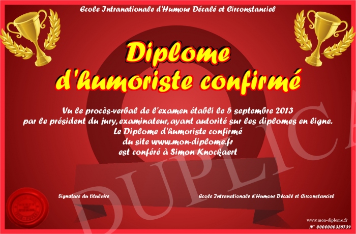 Envoyez par email votre Diplôme d'humoriste confirmé personalisé