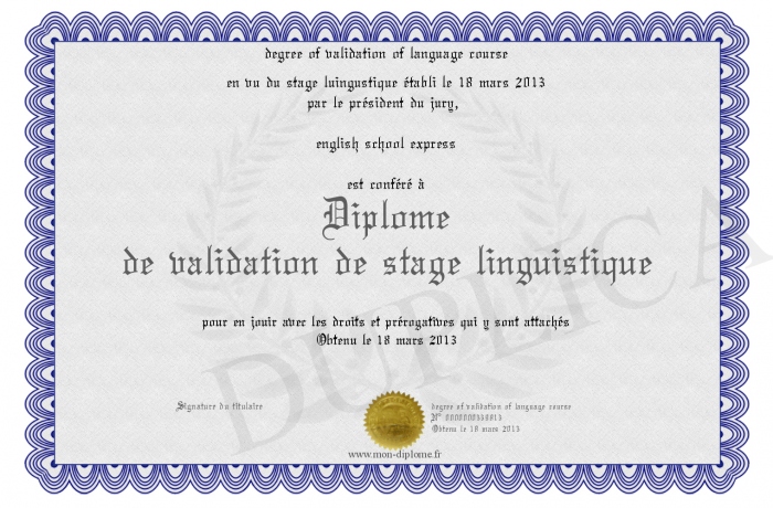 Envoyez par email votre Diplôme de validation de stage linguistique personalisé