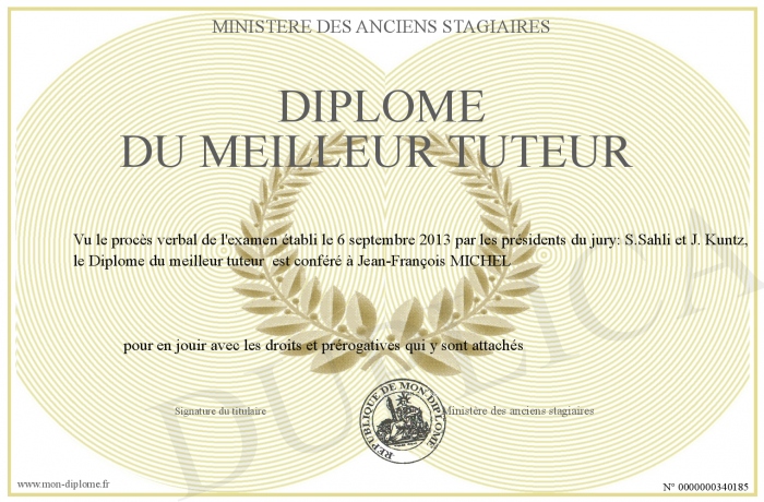 Envoyez par email votre Diplôme du meilleur tuteur personalisé