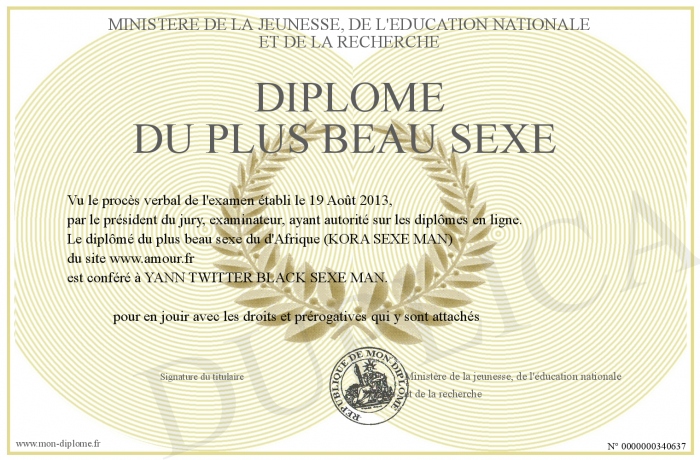 Envoyez par email votre Diplôme du plus beau sexe personalisé