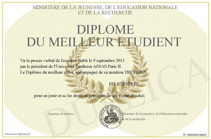 Envoyez par email votre Diplôme du meilleur étudient personalisé