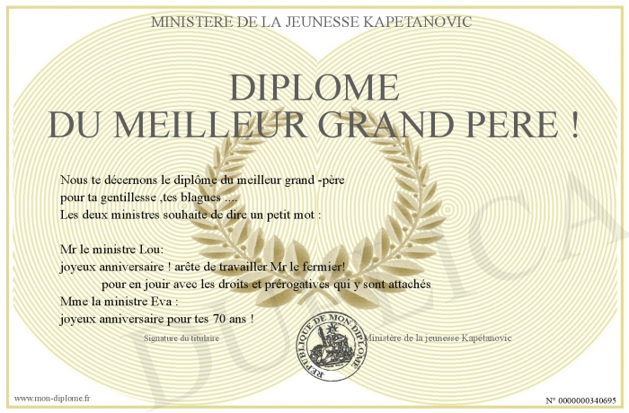 Envoyez par email votre Diplôme du meilleur grand père ! personalisé